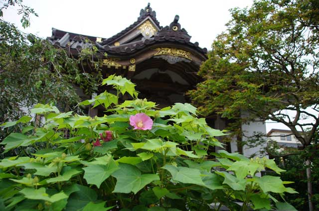 妙隆寺のフヨウの花が少し咲き出してきました。まだまだこれからです。(写真左)