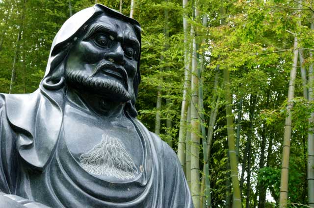 半僧坊参道入口には「嵩山少林寺初祖達磨円覚大師像」があります(写真上)。