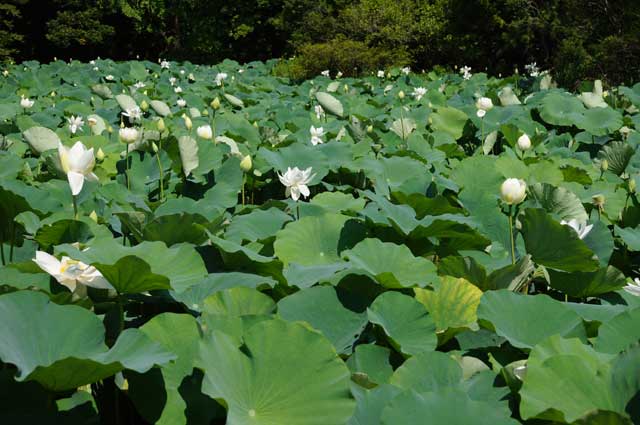 平家池には白色がありますが蕾がたくさんあります。数日後には一斉に咲き揃いそうです。