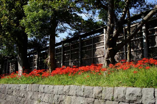 鶴岡八幡宮・東側の通路のヒガンバナは満開で、見頃は今週末までは、なんとか続きそうです。