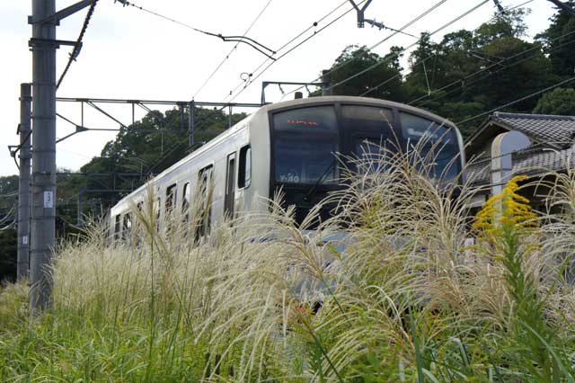 横須賀線沿線にはススキが繁っています(写真左)。