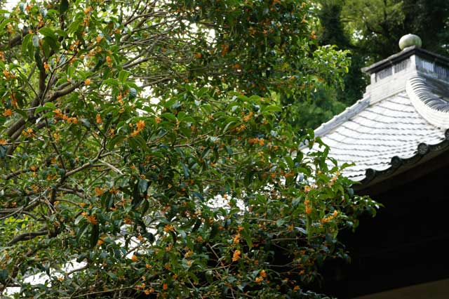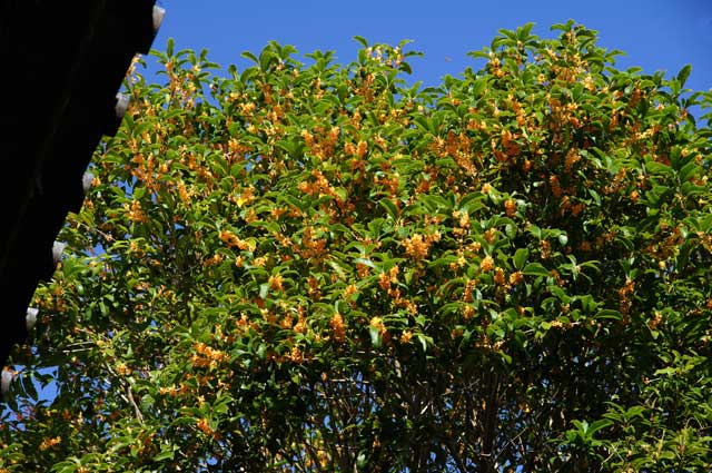 今年もキンモクセイが咲きました。しかし今年は花が少ないようです(写真右)。