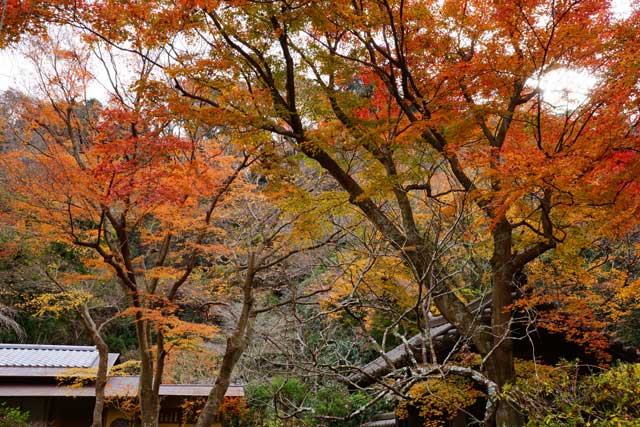 鎌倉駅から近く、比企ガ谷の谷奥にある妙本寺の紅葉が始まりました。