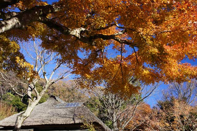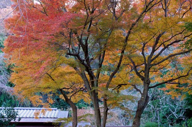 金沢街道沿いにある報国寺の黄葉が見頃です(写真上)。紅葉はやや早く感じました。