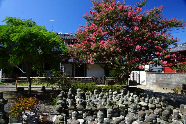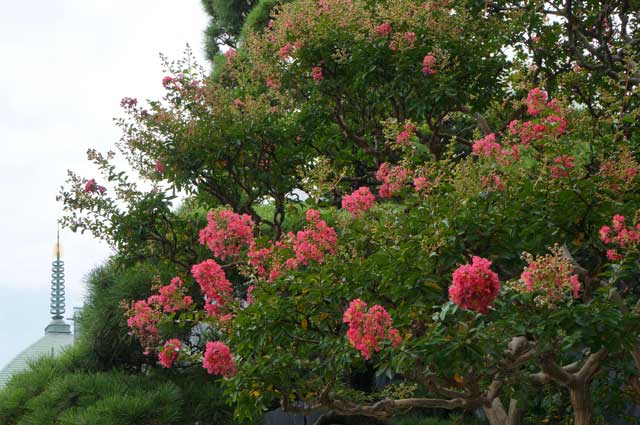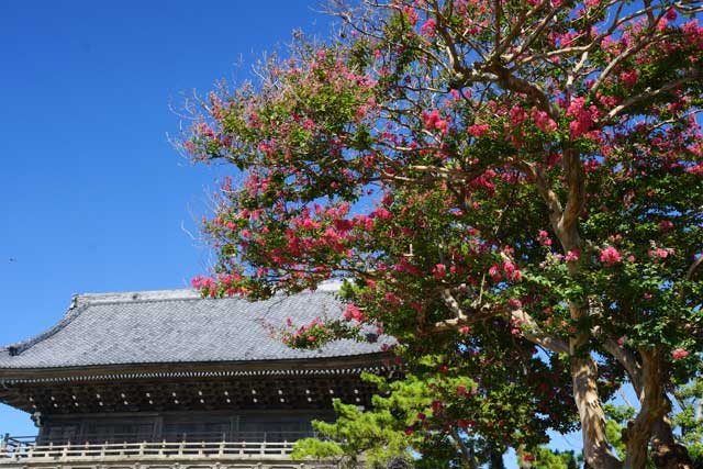 江ノ電電鉄線の江ノ島駅の近くの龍口寺、サルスベリが咲いています。