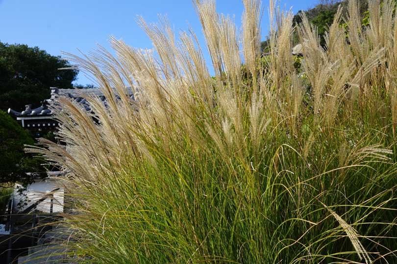浄智寺のススキは、穂が伸びてきていました。シュウメイギクはまだほとんど咲いていません。
