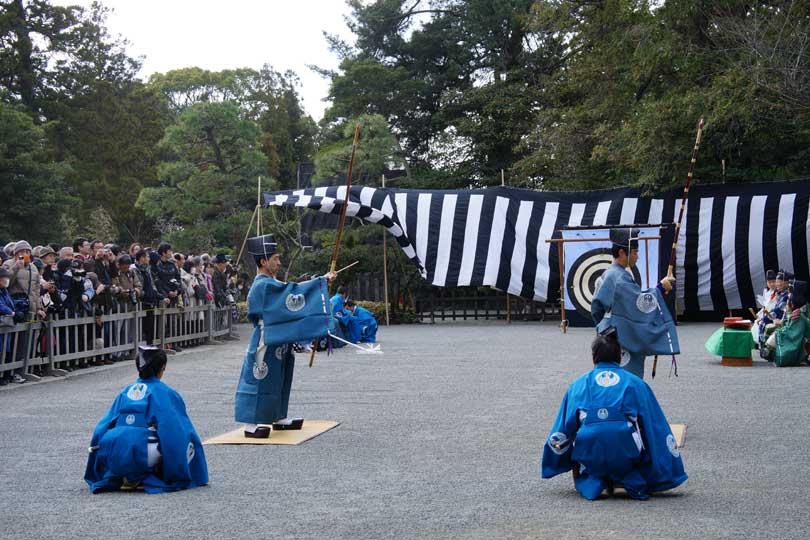 午前10時から舞殿での祭儀のあと、的を射る除魔の神事が行なわれました。