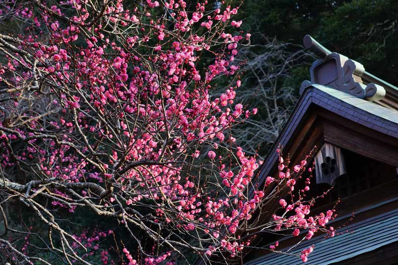 荏柄天神社の寒紅梅。
