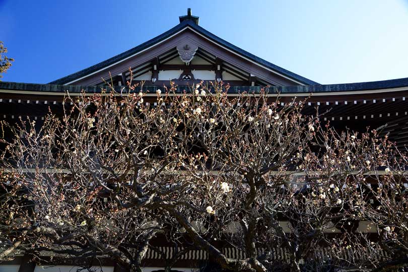 北鎌倉の円覚寺・仏殿横の白梅はやっと一部咲き程度で、見頃はまだ先です。