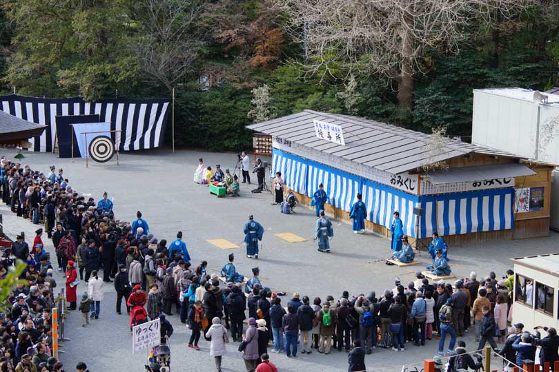「除魔神事」は、鎌倉幕府の「御弓始」と称した武家の事始めが起源といわれています。