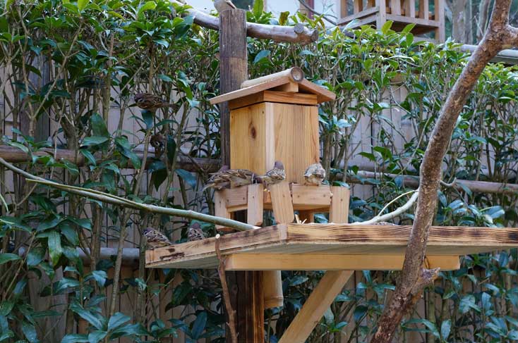 小鳥の餌箱等があり、スズメがたくさん来ていました。