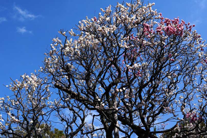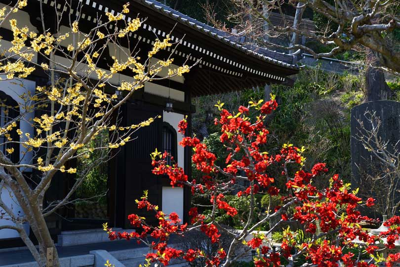 鎌倉駅の近くの本覚寺にはウメや早咲きの河津桜が咲いていました。