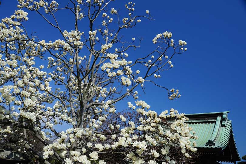 北鎌倉の円覚寺(写真左)、東慶寺(写真右)のハクモクレンが満開になっていました。