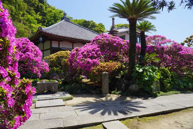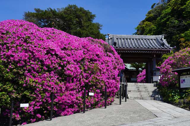 ツツジ、新緑が見頃の長谷寺、安国論寺、妙本寺。