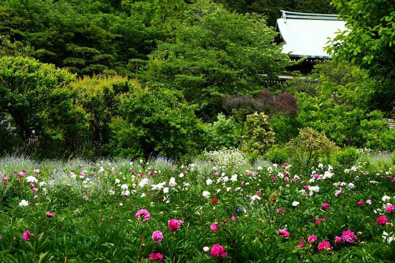 フラワーセンターの近くの龍寳寺、シャクヤクがたくさんあります。