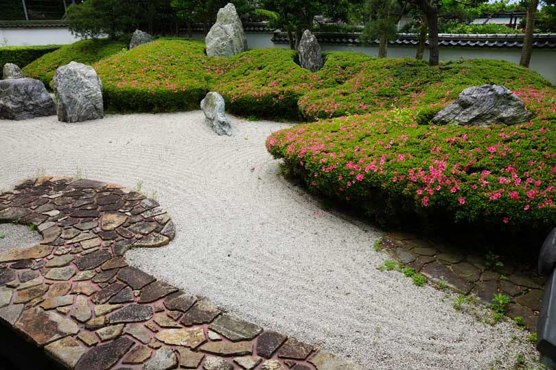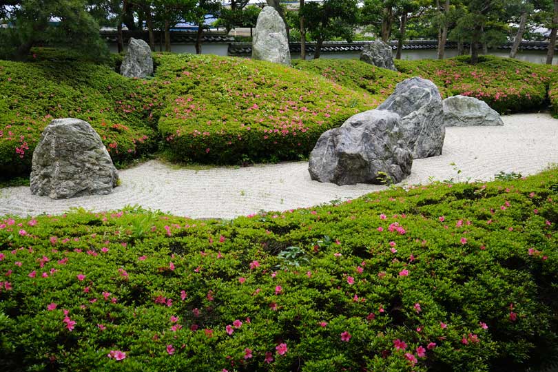 光明寺の石庭、サツキはもう少し。