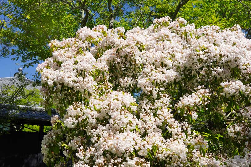 北鎌倉の東慶寺にはアメリカシャクナゲの一種カルミアが満開です(写真上2枚)。
