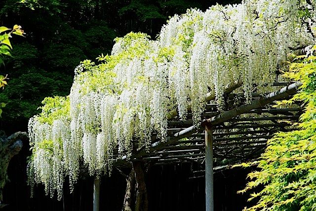 寿福寺の隣の英勝寺、白フジが見ごろになっています。