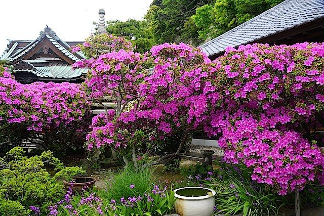 安養院のツツジが見ごろ。妙本寺はシャガと新緑。