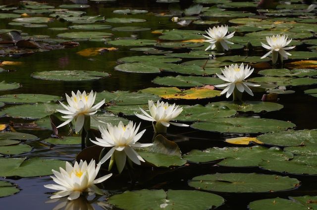 バラが満開で、ハナショウブ、スイレンも咲き出していました。
