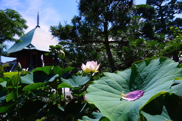 本覚寺はノウゼンカズラと鉢植えのハスの花等が咲いていました。