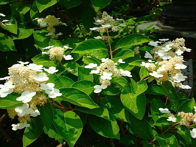 御霊神社のアジサイは、咲いていますが花数は少ないです。