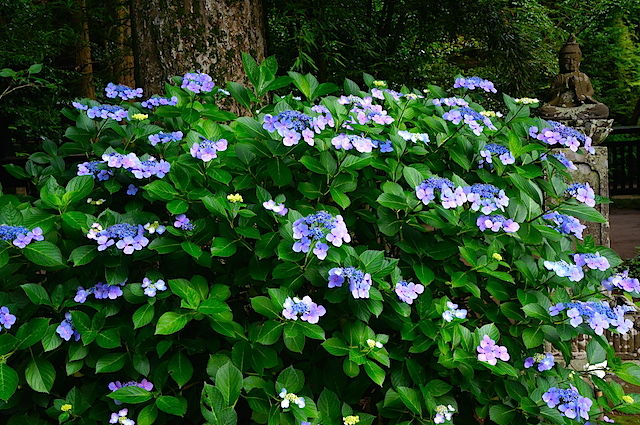 アジサイが見ごろ、北鎌倉の円覚寺。