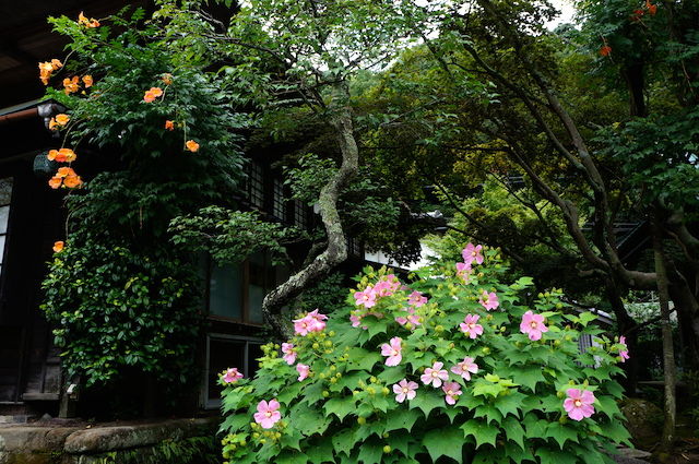 扇ガ谷の海蔵寺にはフヨウが次から次へと咲いていました(写真左)。