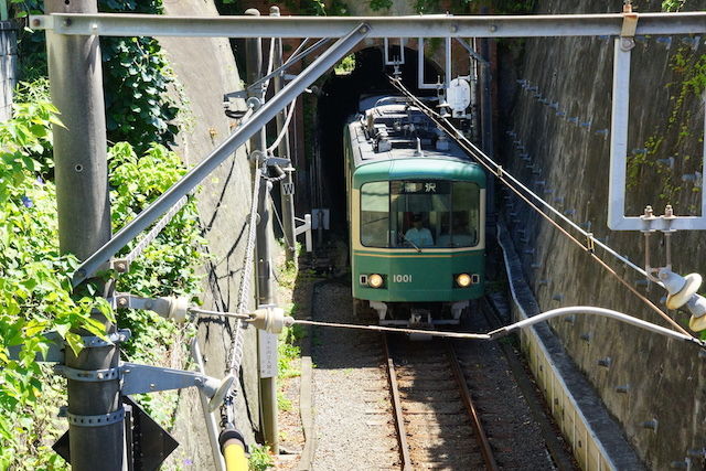 極楽寺駅近辺の江ノ電の電車も写してみました(写真下)。