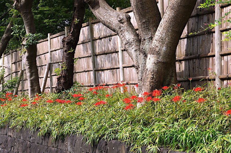 鶴岡八幡宮の東側通路、ヒガンバナがだいぶ咲いてきました。