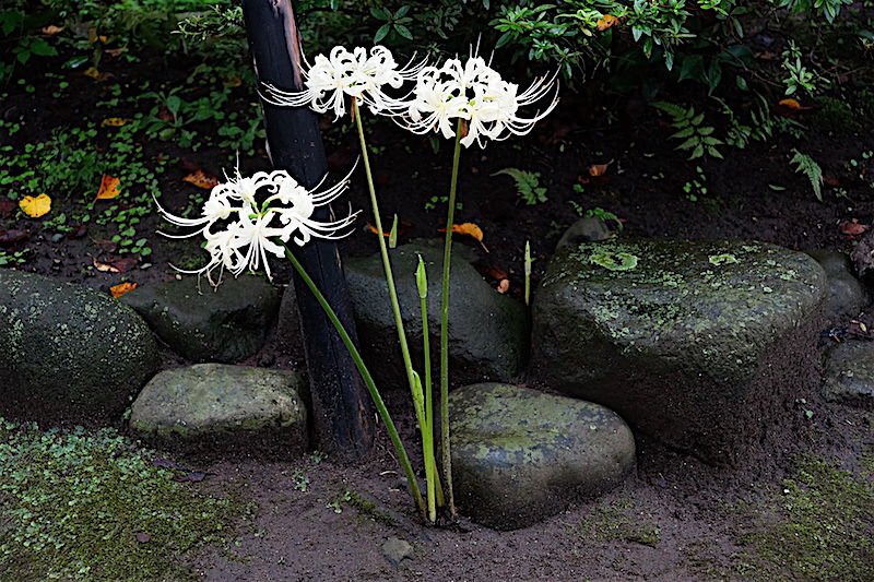 境内のあちこちに白いヒガンバナが咲いていました。