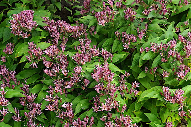 シュウメイギク(写真上)、ホトトギス(下左)、ムラサキシキブ(下右)