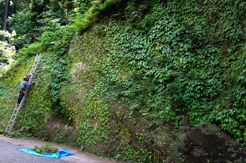 北鎌倉の東慶寺、岩壁にイワタバコが茂ってきました。