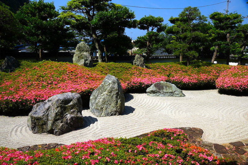 光明寺石庭のサツキが見ごろになっていました。もう少しで満開。