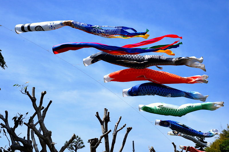 もうすぐ「こどもの日」。鯉のぼりが青空を泳いでいました。