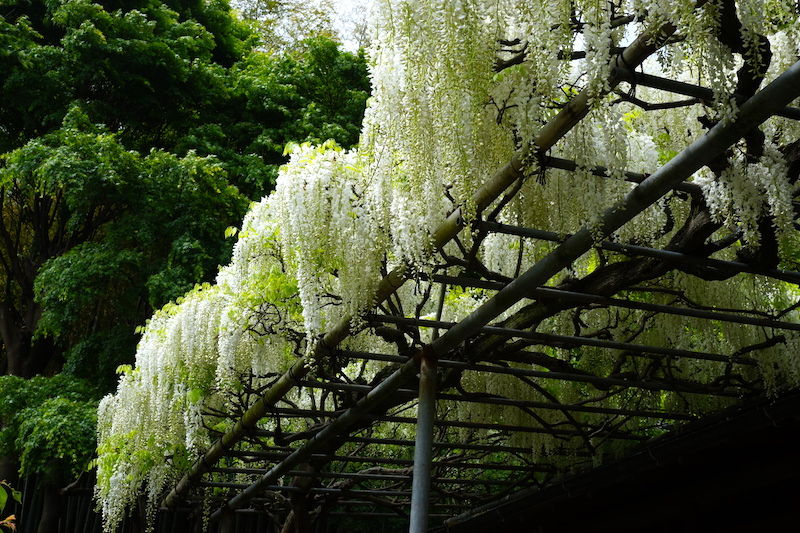 白フジが見ごろの英勝寺。