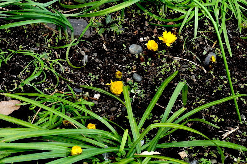 足元にはフクジュソウが顔を出していました。本当の春はまだ先。