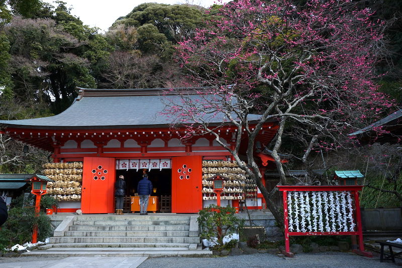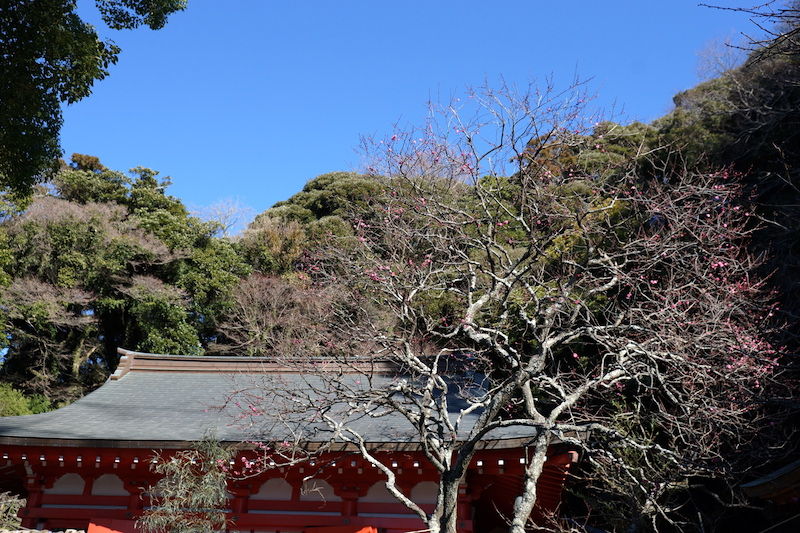 ウメがわずかに咲き出した妙本寺、荏柄天神社。