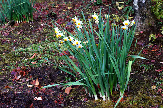 スイセン(水仙)は全て倒れていました(写真右の手前)。