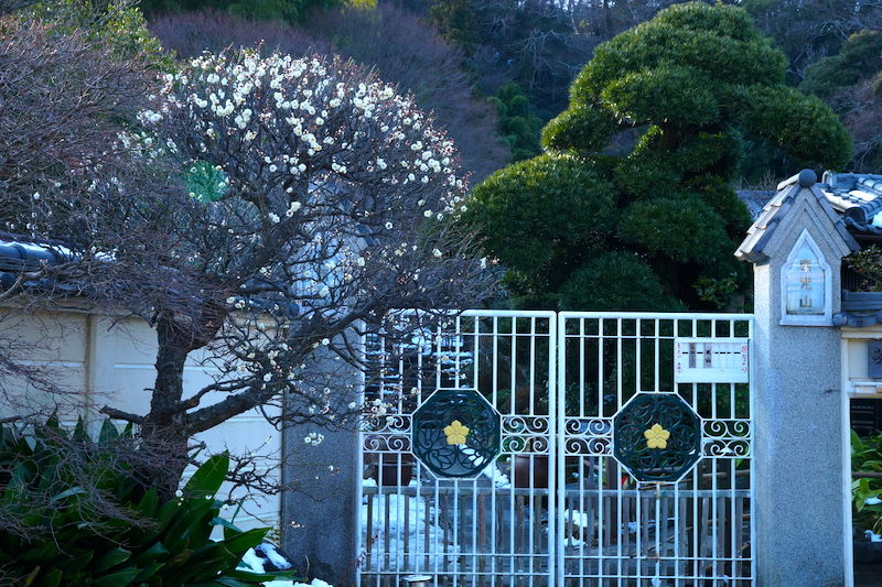英勝寺の門前には白梅が咲いていました。まだまだこれからが見頃になります。