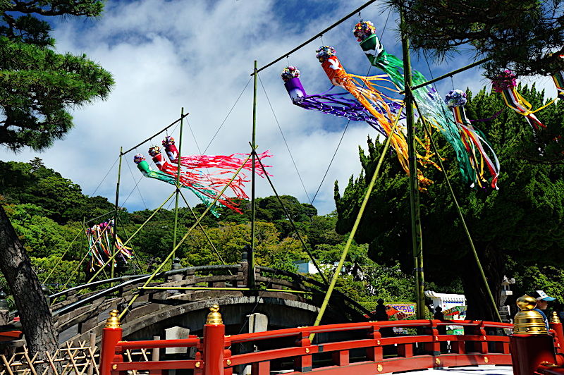 鶴岡八幡宮では7月7日の七夕祭の飾りが風に吹かれていました。