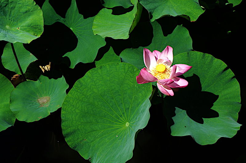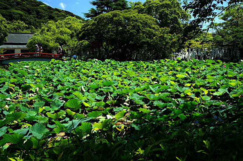 源平池はハスの葉で埋め尽くされていました。