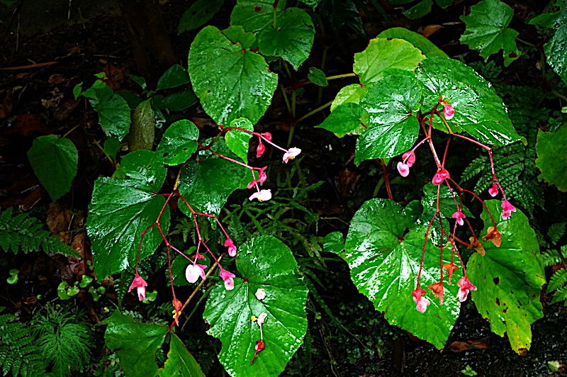 足もとにはシュウカイドウの花が咲き出していました(右)。