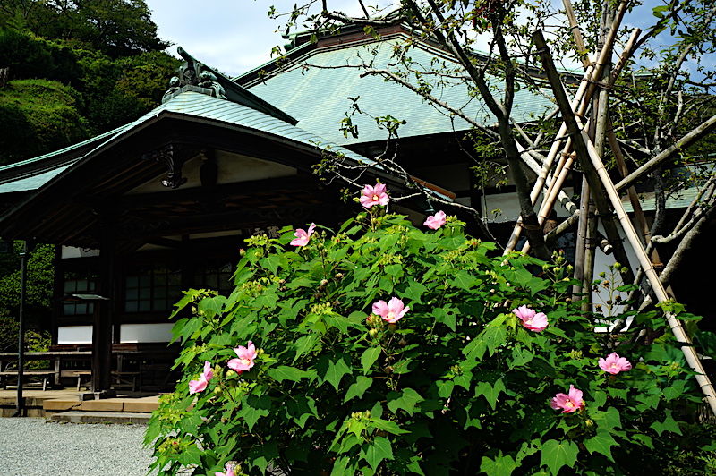 二階堂の瑞泉寺にはタマアジサイやフヨウが咲いていました。