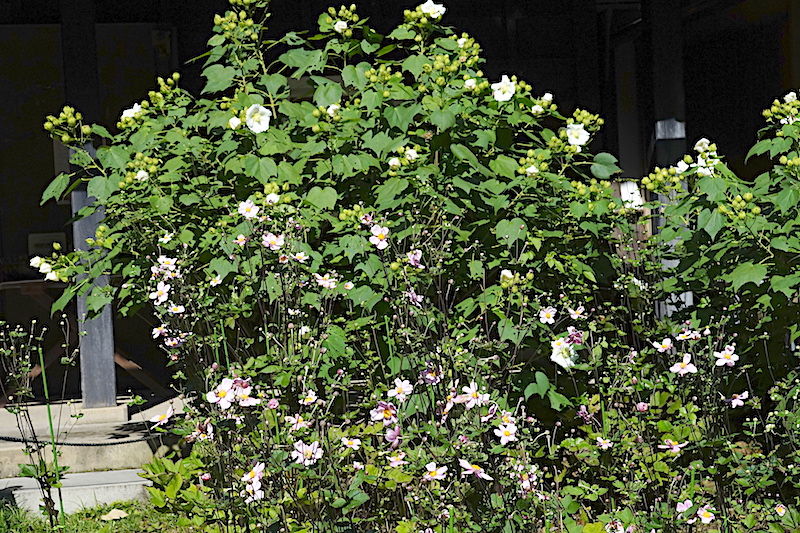 近くの東慶寺にはフヨウ、シュウメイギク、ハギなどが咲いていました。