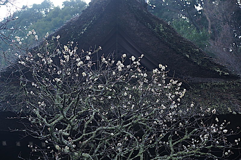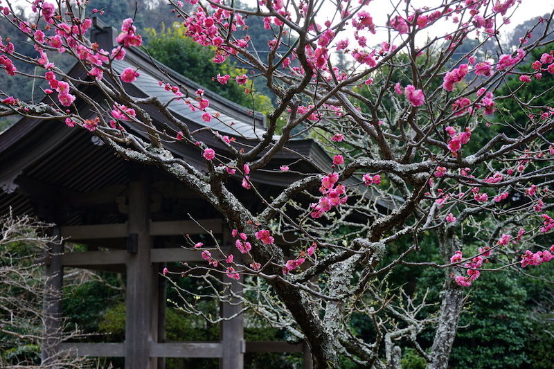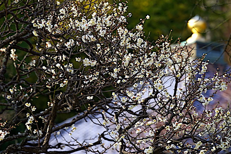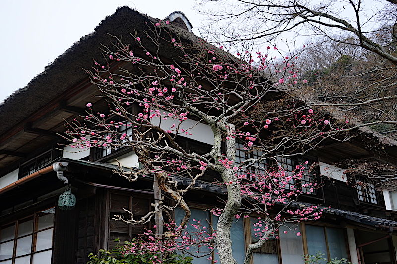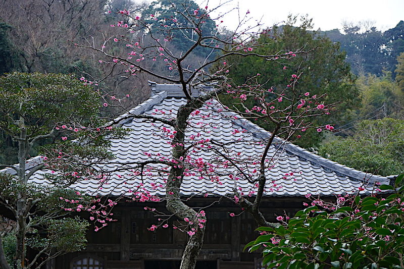 立春が過ぎても東慶寺はまだ冬のなか。ウメがやっと咲き出したところ。
