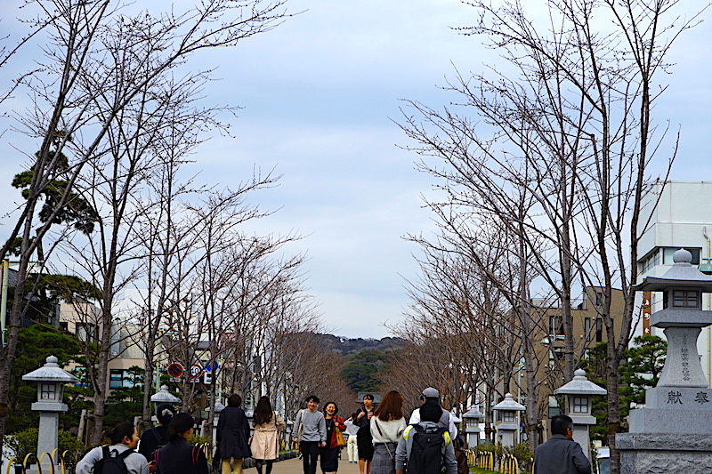 本覚寺のシダレザクラ、段葛のソメイヨシノ。
