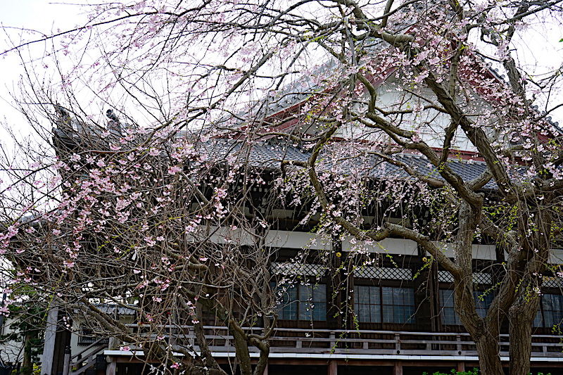 本覚寺のシダレザクラがもうすぐ満開になりそうです。