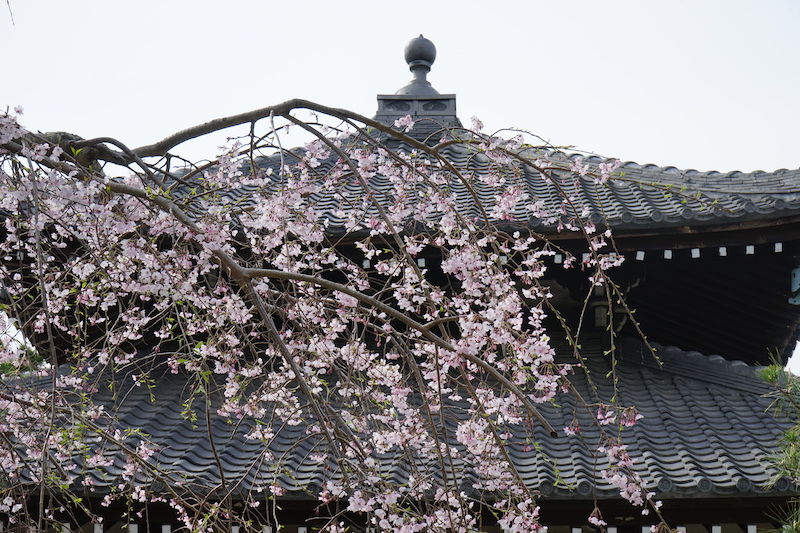 安国論寺のシダレザクラはほぼ見頃になっていました。