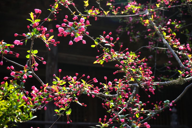 カイドウも蕾が大きくなりほぼ同時に咲き出すでしょう(写真下2枚)